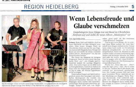 "New CD Release Concert! 'Joyce Ejiogu one more time' Sunday, 21.11.2010 Kurfürstenallee 76, D-Leimen 19.30 Uhr "