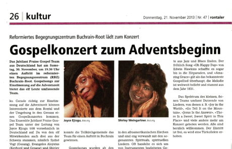 "Gospel Music Programme in Maybachstr. 10, D- 68169 Mannheim (By Neuer Messplatz) on 19. Febrary 2011 by 6:30 PM. More Infos: www.jubilant-praise.de"