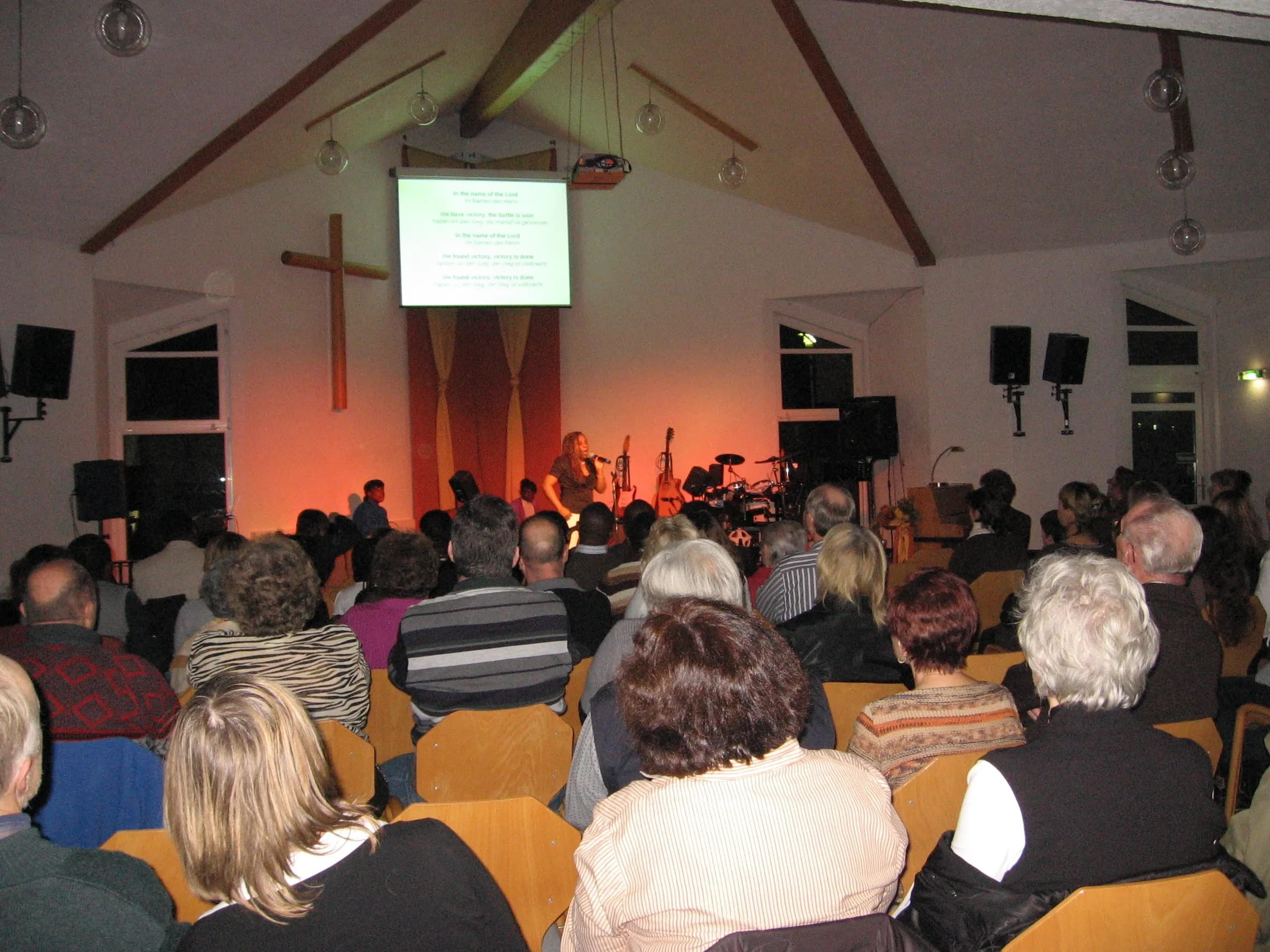 "There will be from 7 PM on 1. December 2012 a Christmas special program with the "Hour of Praise & Worship" The band sings Christmas carols and invites all to sing along, and the "Sunshine Kids" presents a choreography piece. There will be fun and gifts for the children and very delicious Christmas Cookies! The collection is to support "Open Doors"