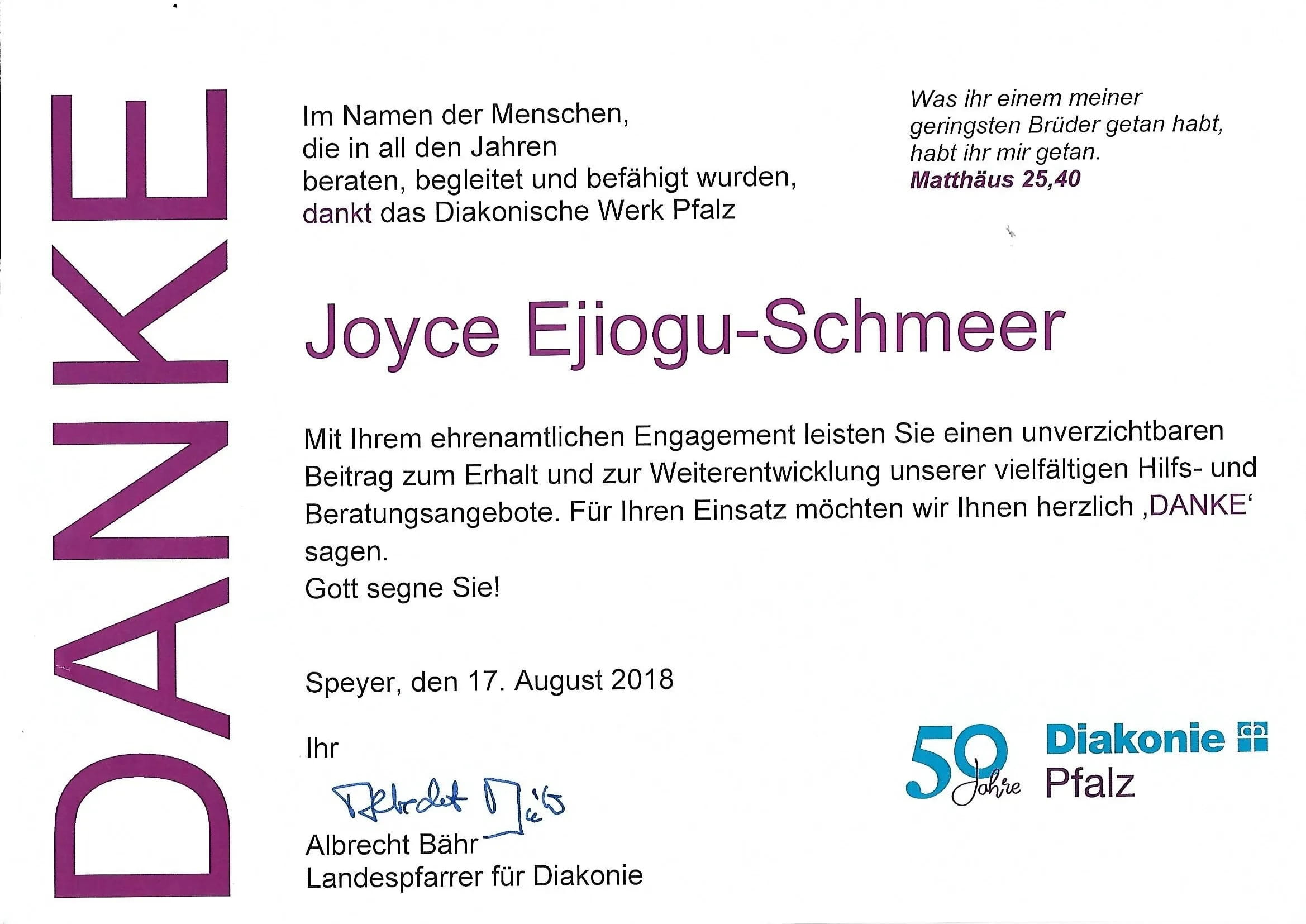 der Gospelkünstlerin Joyce Ejiogu.