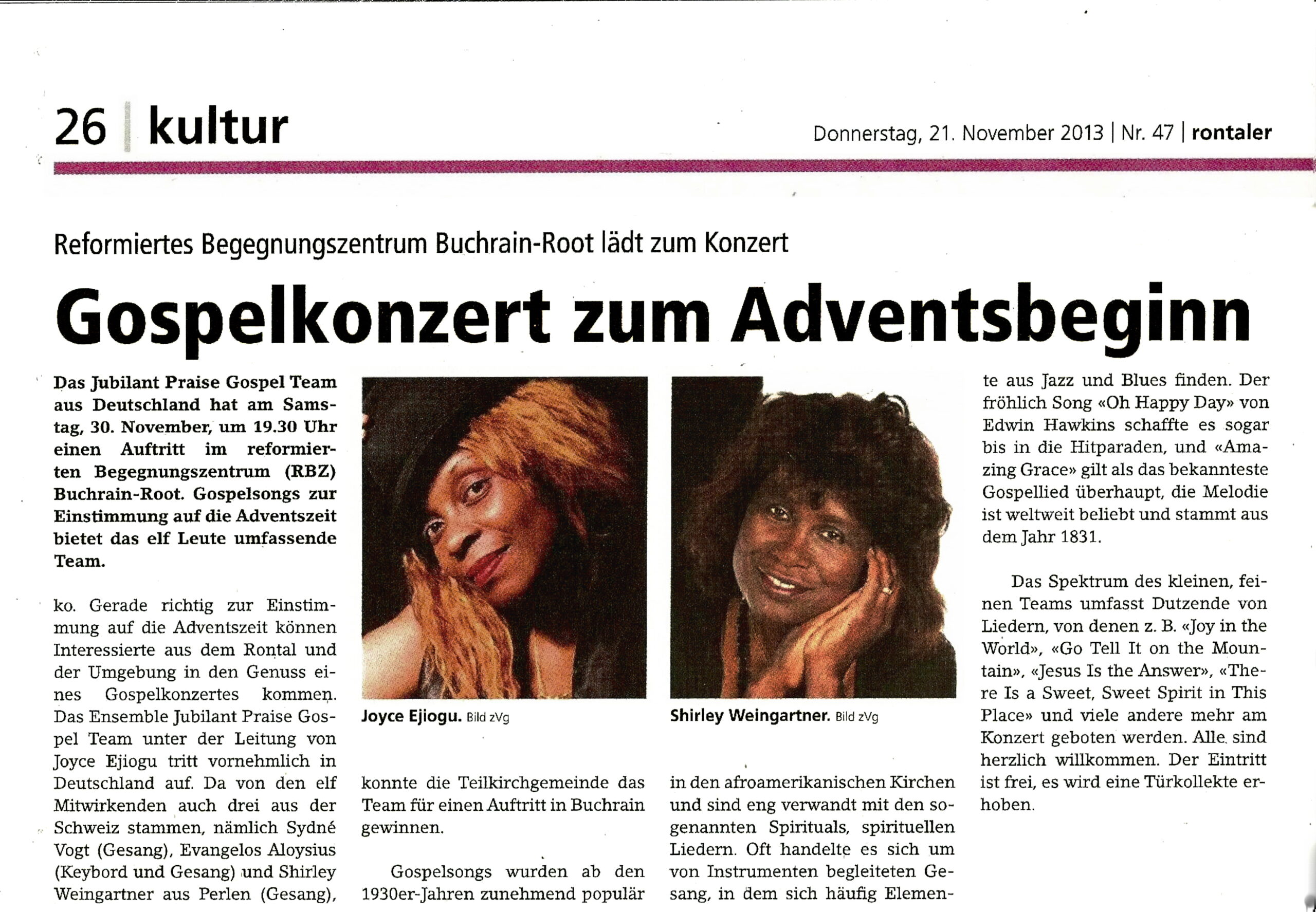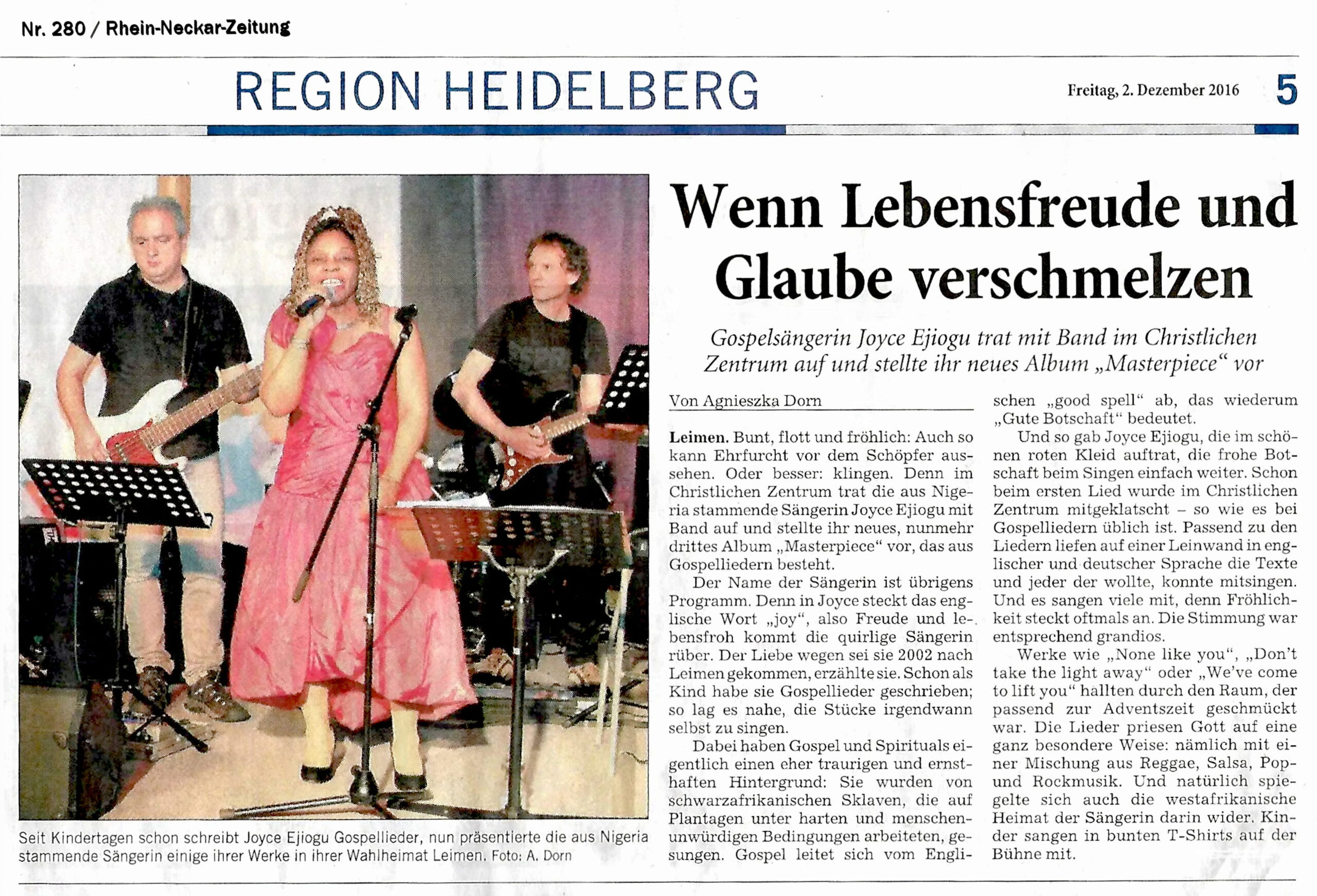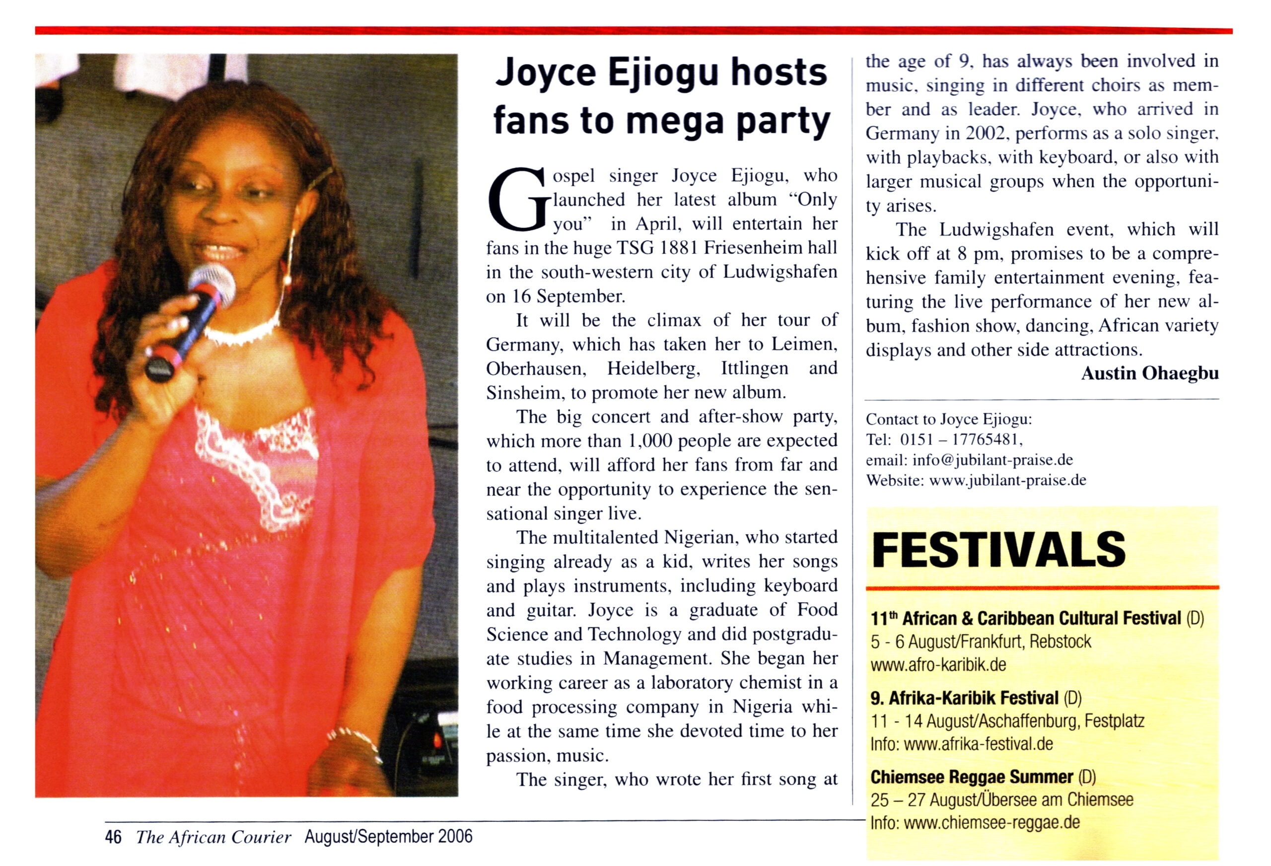 der Gospelkünstlerin Joyce Ejiogu.