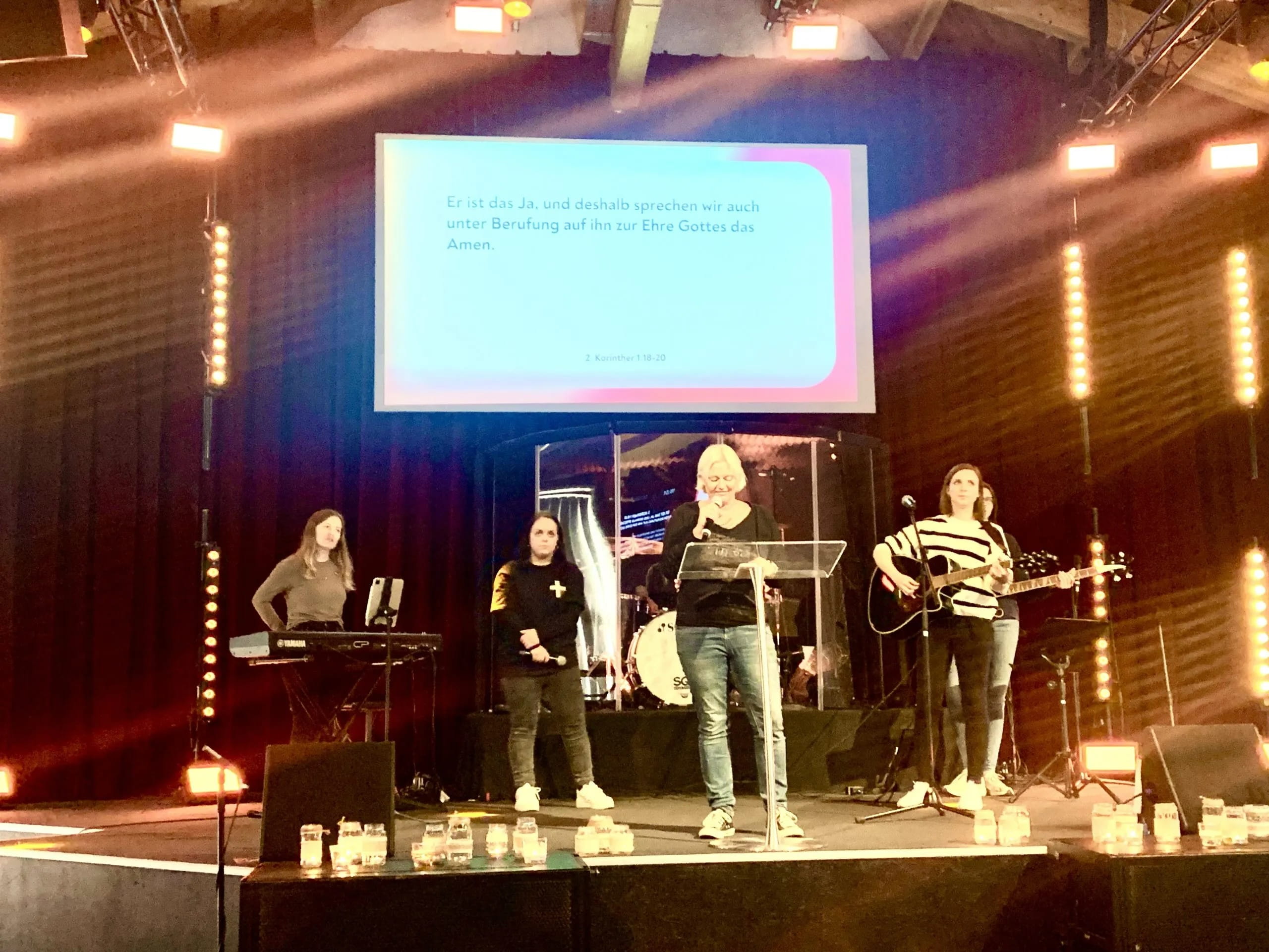 "There will be from 7 PM on 1. December 2012 a Christmas special program with the "Hour of Praise & Worship" The band sings Christmas carols and invites all to sing along, and the "Sunshine Kids" presents a choreography piece. There will be fun and gifts for the children and very delicious Christmas Cookies! The collection is to support "Open Doors"